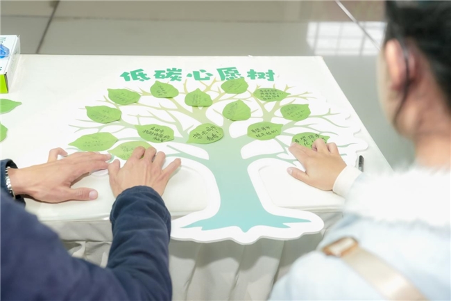 绿色理念,在亲手创造中得以内化。在“狮舞新风”环保袋涂鸦区,省级非遗“周市舞狮”的威武形象,在旅客的画笔下跃然于环保袋上。传统民俗与现代环保理念在此完美融合,一件件独一无二的“绿色文创”随之诞生。一旁的“低碳心愿树”留言墙,则被一片片写满寄语的“绿叶”贴纸装点得生机盎然。“愿天空更蓝”“想去周市看看”,旅客的祝福与期盼,共同“浇灌”着这棵象征绿色发展的希望之树。