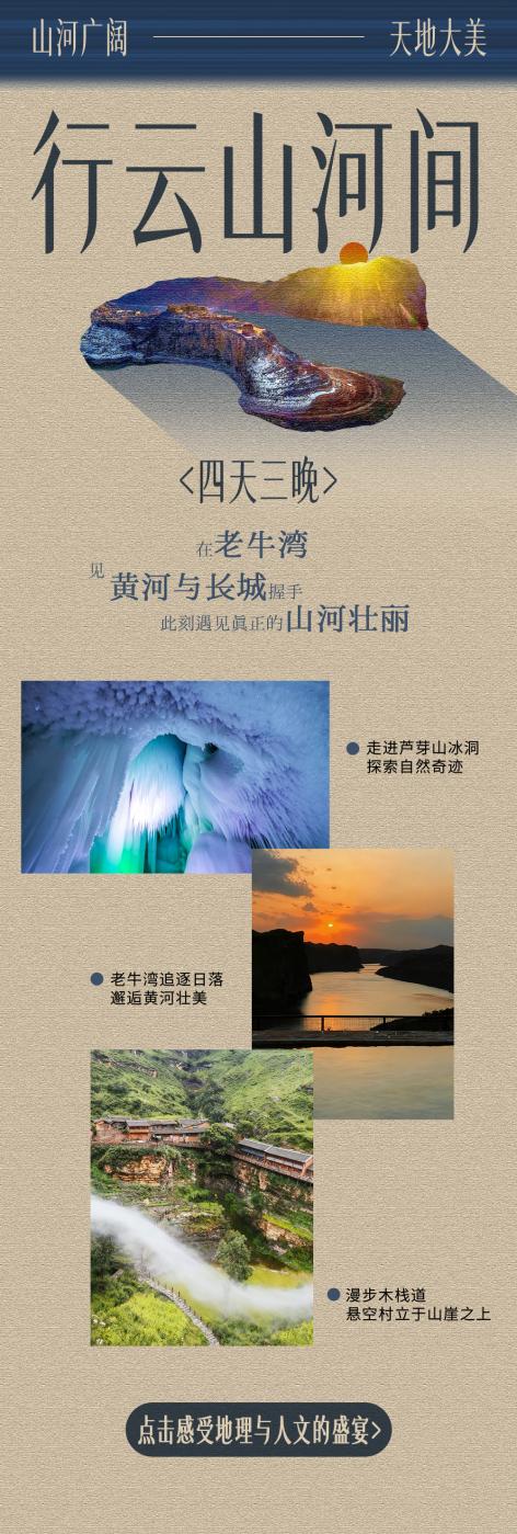 一脚踏三省的山河盟约、“中华第一关”雁门关的边塞风云、芦芽山悬崖古村落的世外桃源。这条线路将自然景观与人文积淀紧密结合,山河不仅为景,更是文明传承的舞台。